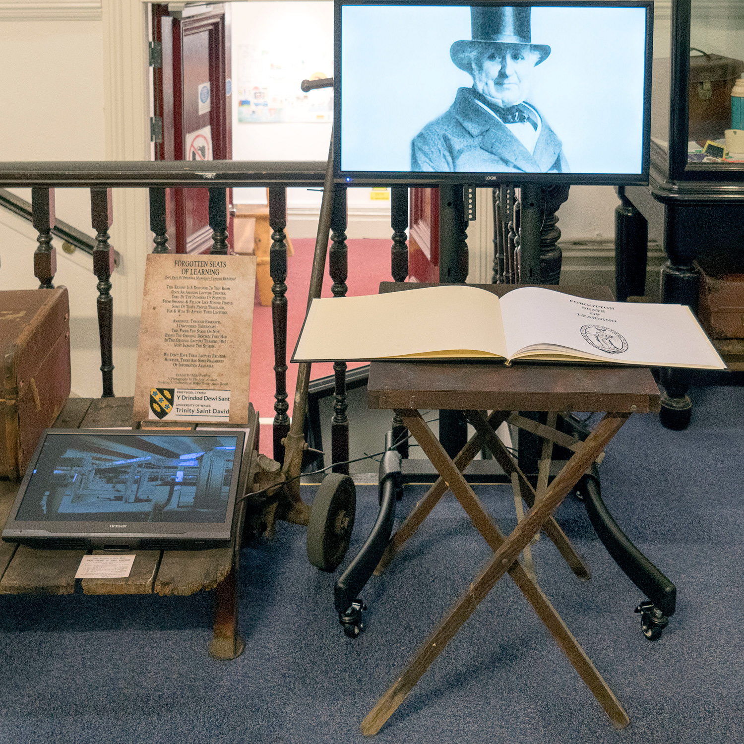 Video of original lecture seats and images of prominent people who instigated the building and Swansea became a center for learning